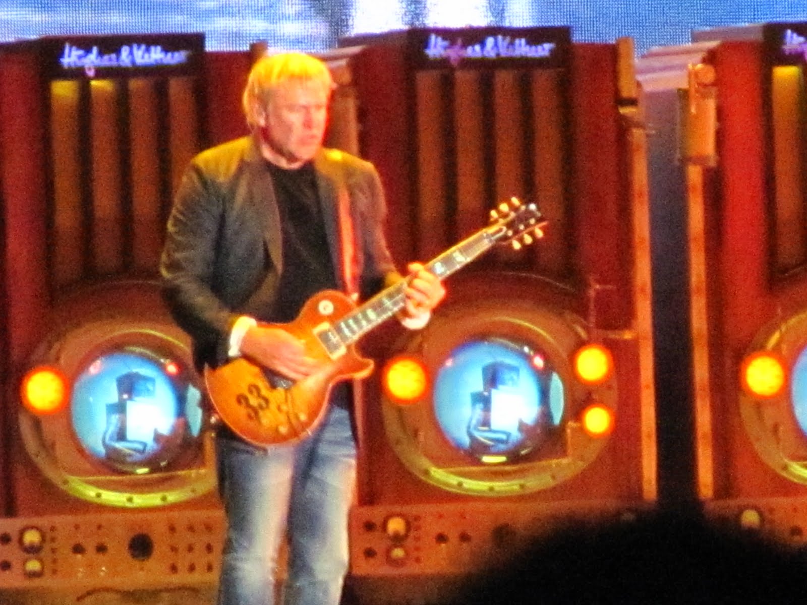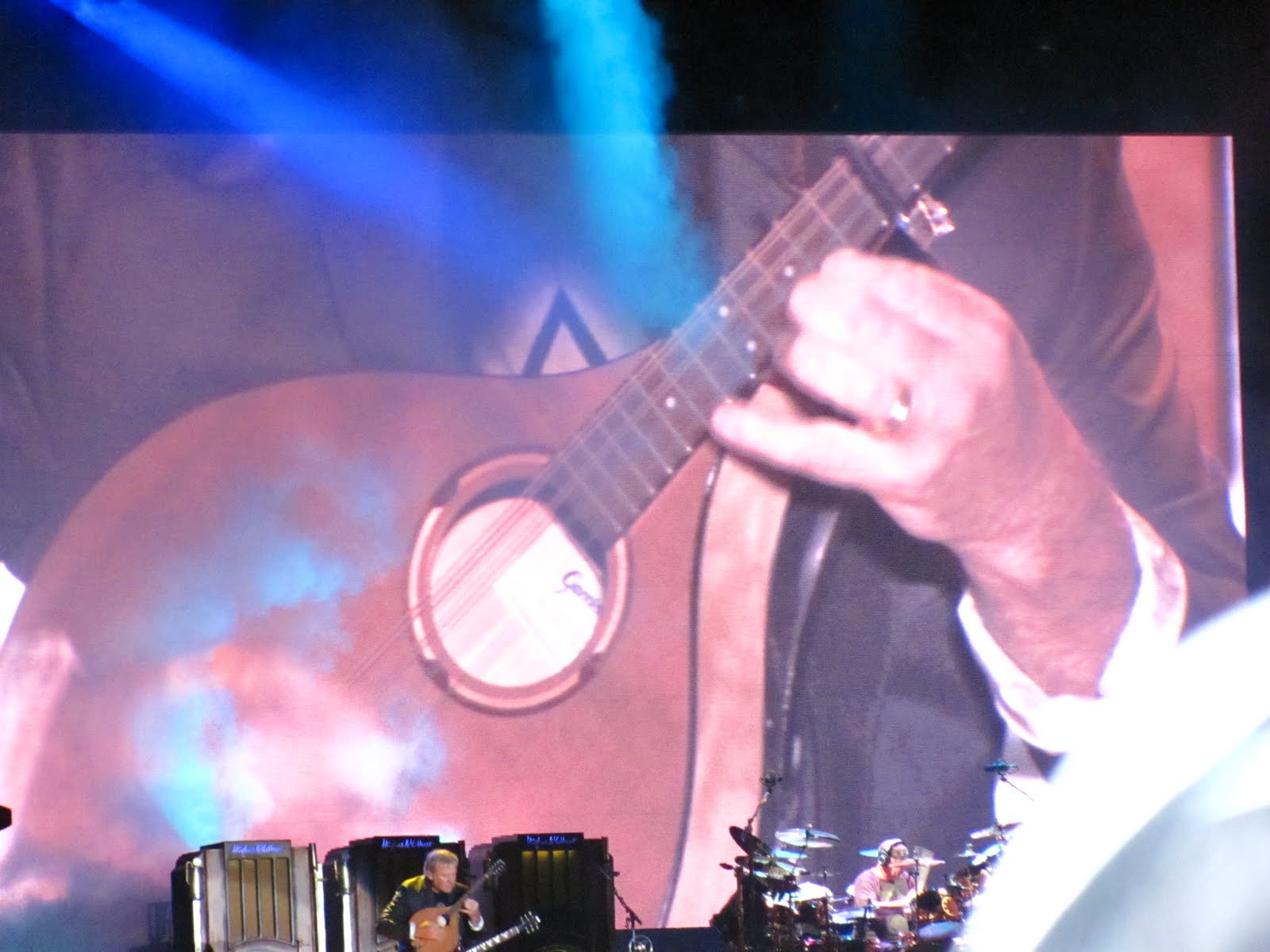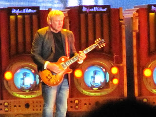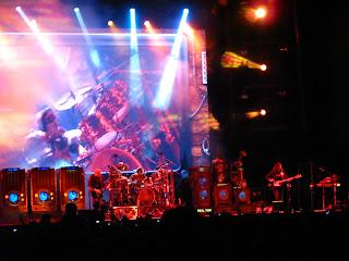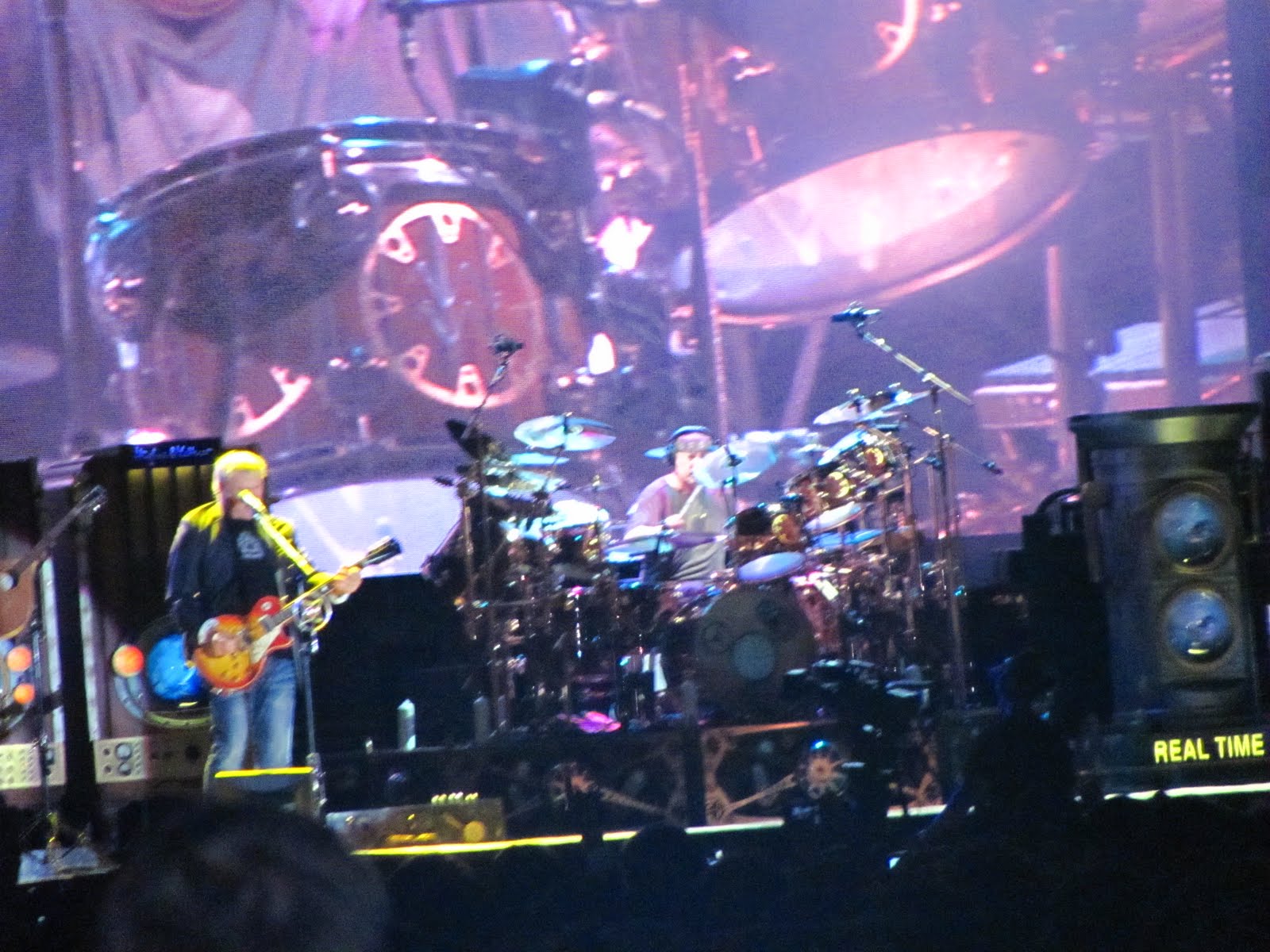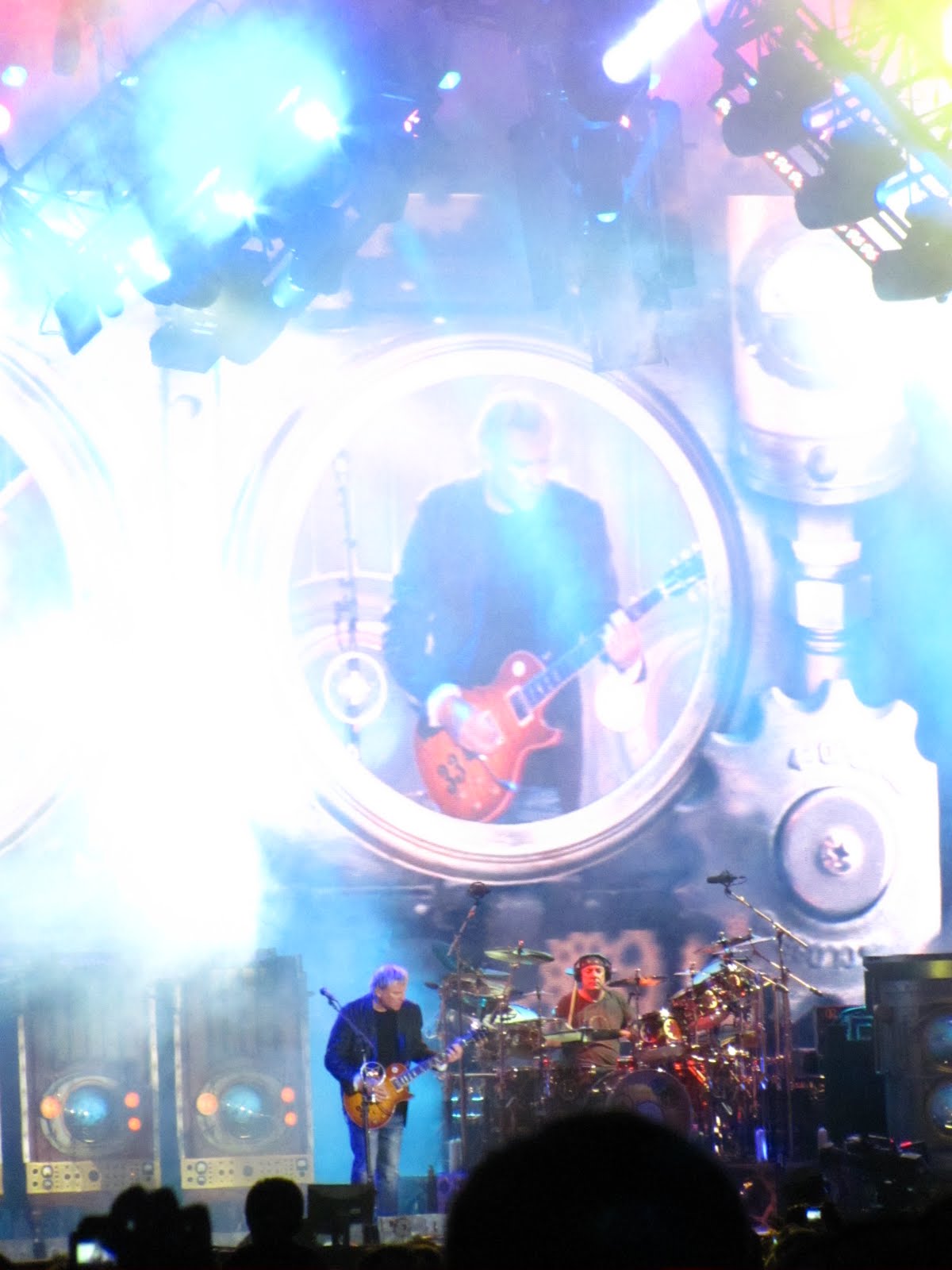 La máquina del tiempo poco a poco iba pasando de la década de los setenta a los cambiantes 80 hasta que llegó a 1981 y se vino lo mejor del show, la segunda parte cargada de clásicos y más y más talento sobre el escenario. El disco Moving Picture fue interpretado en su totalidad, debo decir que personalmente Peart me tenía hipnotizado con su performance en los tarros, intentando descifrar como tocaba cada figura en esa batería interminable, y por su parte el viejo Alex poniendo en jaque la resistencia de la Time Machine con solos de guitarras celestiales, o infernales según se mire o se sienta, que al escucharlos con los ojos cerrados daba la impresión de estar bajo la grabación digital y perfecta del estudio, pero no, el hombre hacía su pega en vivo y en directo, siempre regalando una sonrisa a la hinchada que los idolatró cada vez que rasgó las cuerdas de su guitarra.