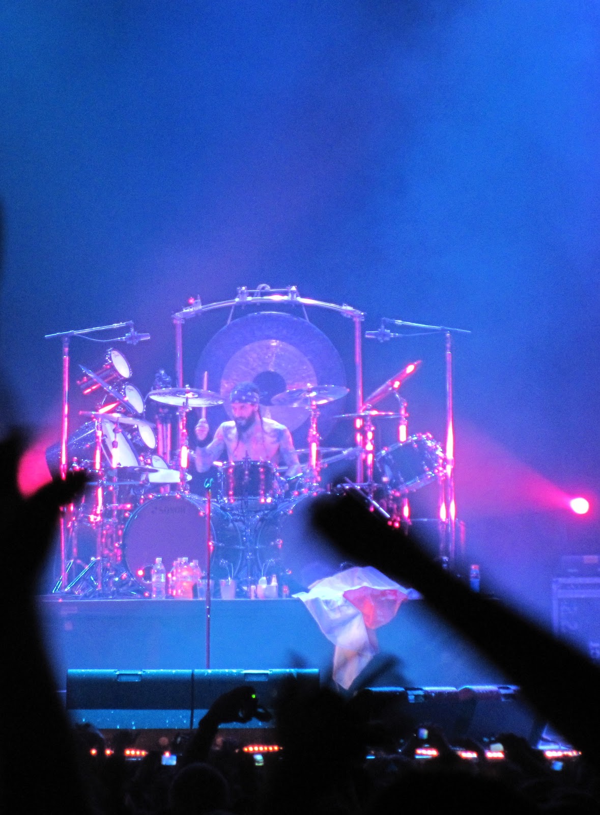 La dupla que se llevó todos los aplausos aquella noche de marzo. El batero se entretuvo un buen rato con el público entre su solo de tarros, dándole un buen respiro al veterano inglés con vistas al último tramo del recital.